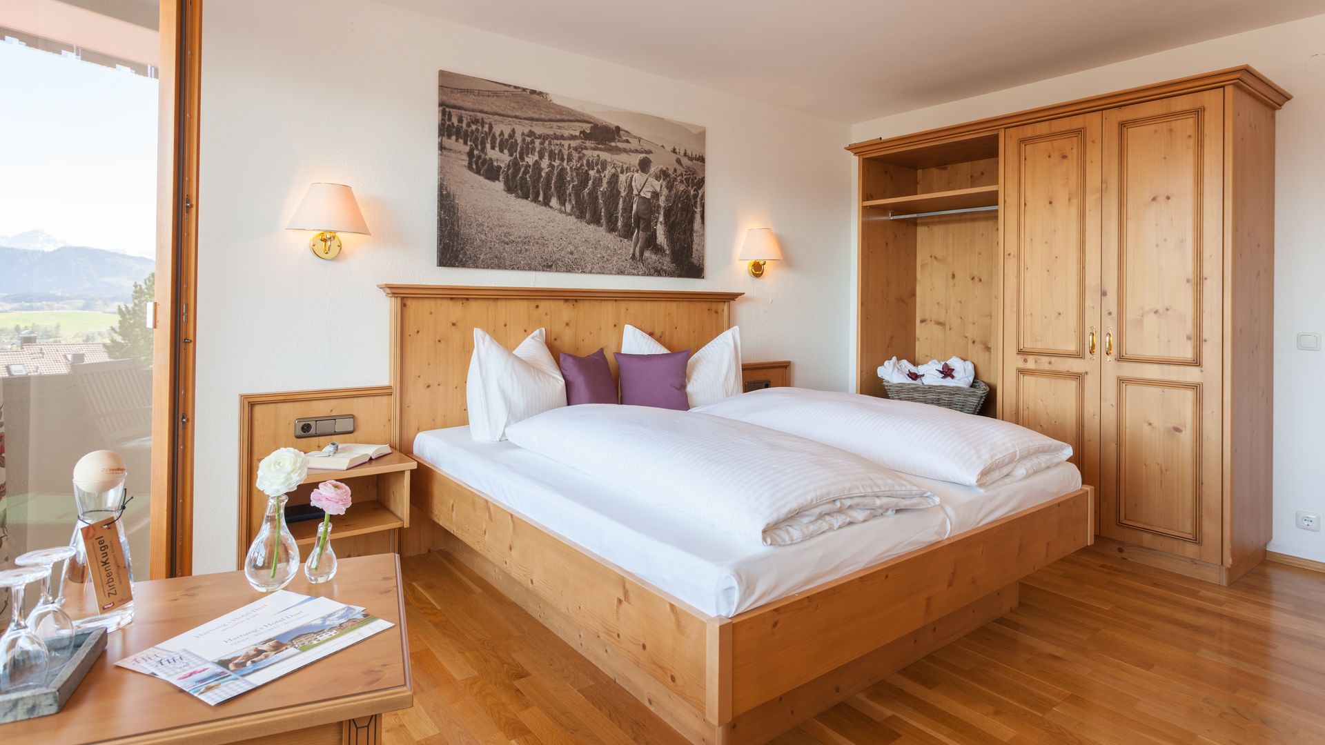 Wenn Sie abends das typische Alpenglühen und das einzigartige Bergpanorama direkt vom Zimmer aus genießen möchten, sind Sie hier genau richtig. Die Doppelzimmer mit See-und Bergblick sind ca. 20-25 Quadratmeter groß und haben einen Balkon zur Seeseite.